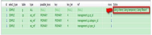 2)在JOIN查询中,ORDER BY或者GROUP BY使用了不是第一个表的列 例如:SELECT * from TableA, TableB ORDER BY TableA.price GROUP by TableB.name