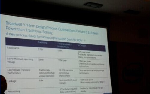 相比使用22nm技术的Haswell,英特尔的14nm工艺将能耗降低了25%。而后者在每瓦性能上却比Haswell高出了两倍还多。英特尔还加入了第二代的FIVR集成稳压设计,以优化低压下的效率。在芯片包装的X和Y轴上,英特尔实现了超过50%的瘦身,从而将尺寸压缩到了30x16.5x1.04mm,而芯片重量也得到了30%的额外缩减。